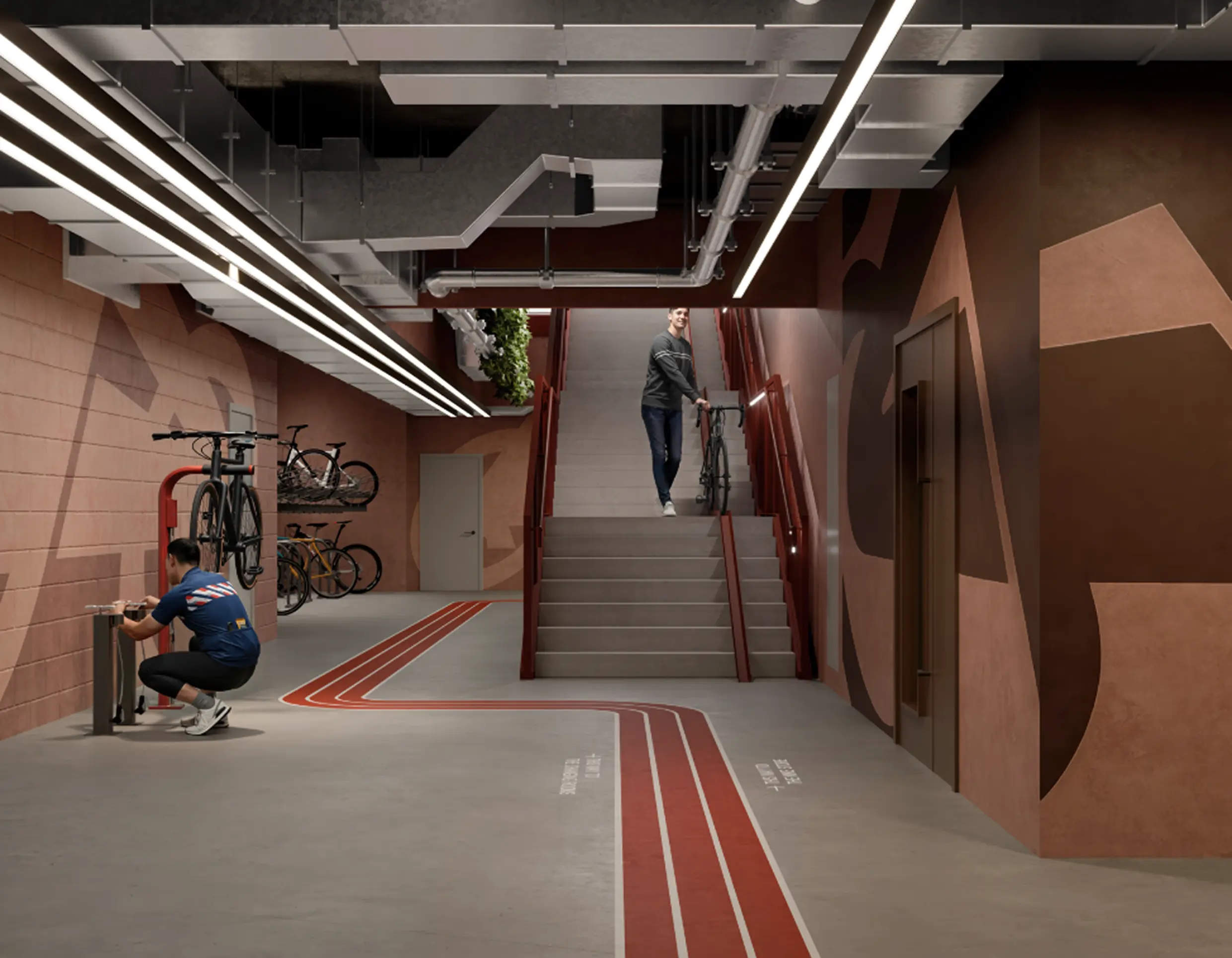 A separate entrance for those arriving under their own steam, with quick and easy access to the building’s members’ club style end-of-trip facilities, including changing rooms, drying room and digital lockers. Arrive with a clear conscience, and fresh at your workspace.